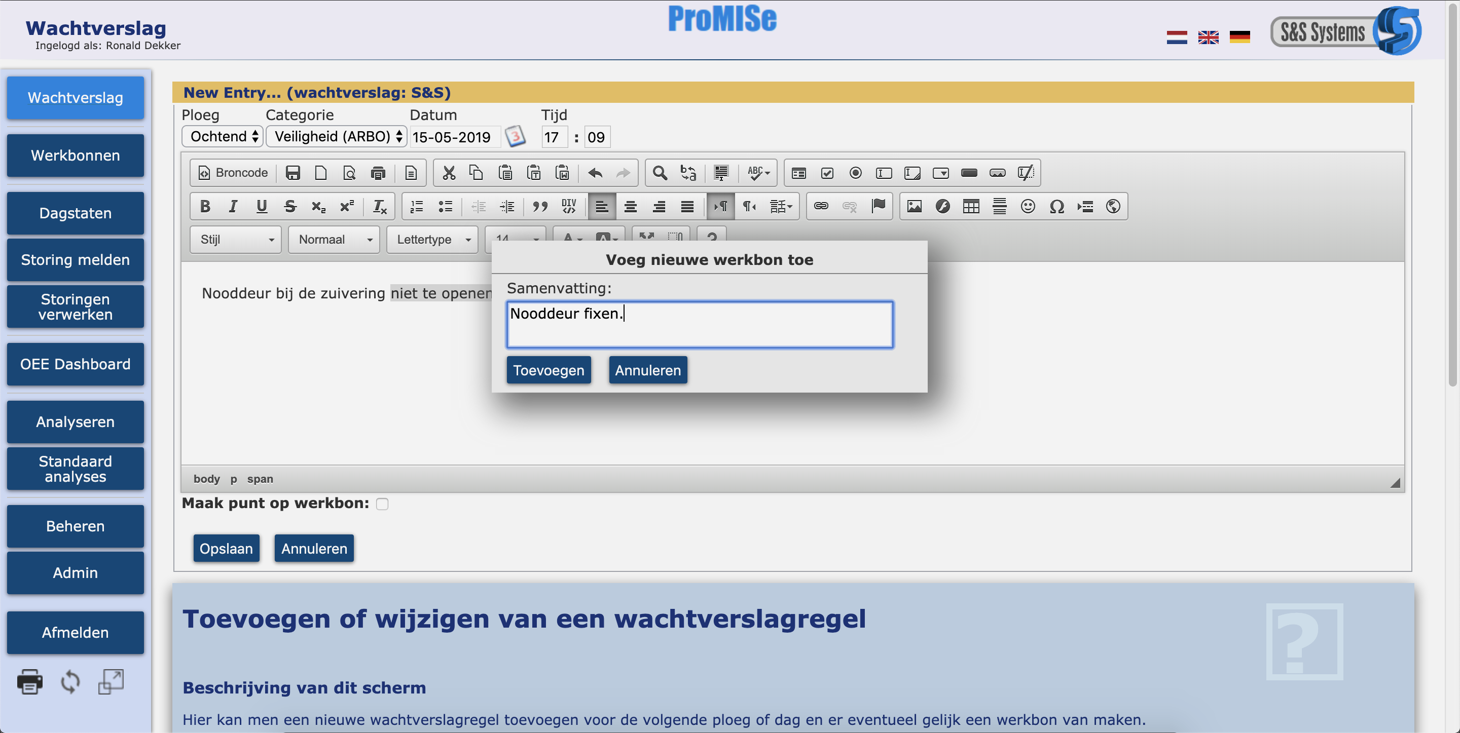 To ensure an efficient shift change it is vital to register all events and actions during the shifts. Important notes or instructions can be left for the next shift or for a different department using the logbook. This creates a safer work environment.